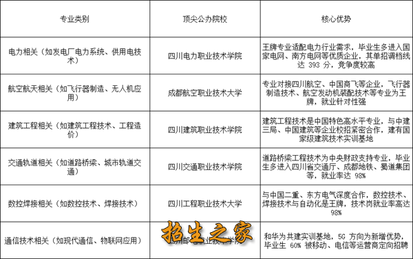 四川单招顶尖公办院校及专业推荐