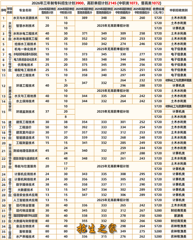 3、我校2025年单独招生普高类录取调档线:332分;中职类录取调档线:农林牧渔类262分,土木水利类242分,财经商贸类266分,计算机类288分,电子信息类249分,旅游类250分,材料化工与资源环境类232分。